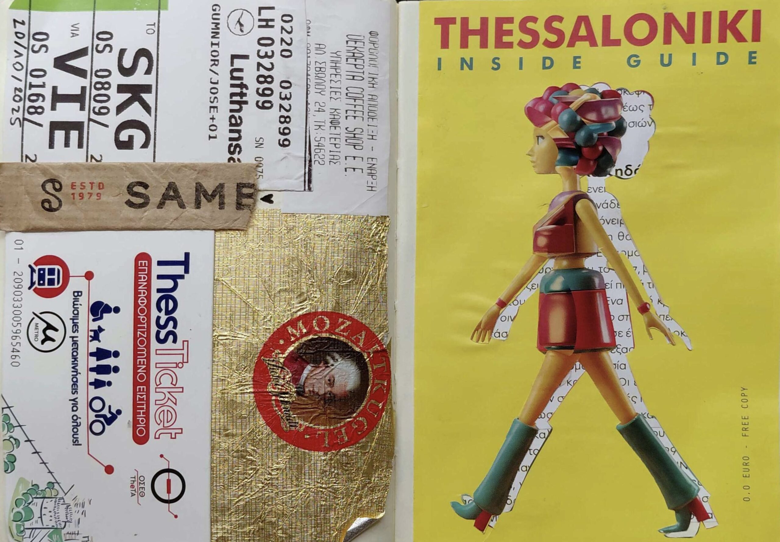If you are not that much into writing but still want to get the experience of working with paper and creating something with your hands, a Junk journal might be your preferred approach. You can imagine a junk journal as a little booklet in which you glue things you get in everyday life that you would usually throw away. For mine I gather what you would usually refer to as junk, like napkins with nice logos, the packaging of a snack or flyers of a place you’ve visited. Once I feel like I have gathered enough material to fill a page, I sit down and assemble my favorite pieces into a collage. During this process I just let my mind wander and remember all the places I’ve been to.