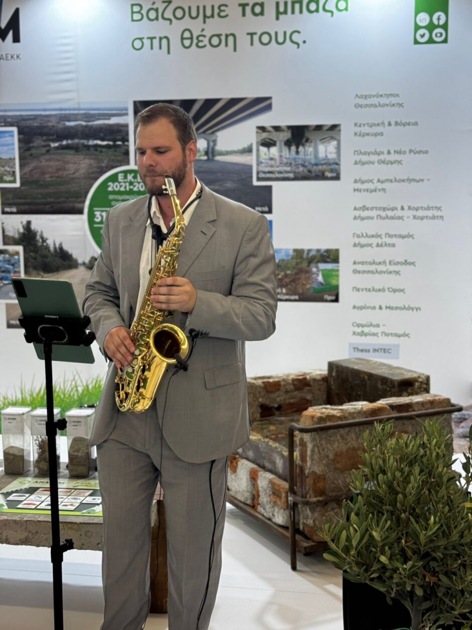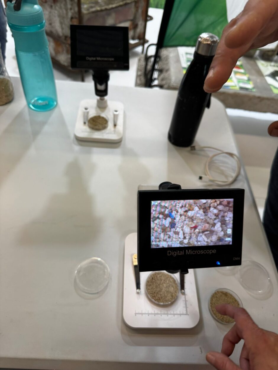 We started our tour of the Fair from stall number 10. As our project’s theme was about the environment, it was the right place for us; it was a chance to learn more about green entrepreneurship. One of the most interesting panels was the one of a greek company that recycled waste from constructing or demolishing a building. As a partner, in their panel, they had the recycling museum, which gave us the chance to time travel through cans and bottles of soft drinks and other liquid products from the 1980s and 1990s, which were found at beaches. It was very eye-opening to watch through a microscope how plastic never disintegrates completely. Micro-plastics mend with the sand, the water, even in the air we breathe, making their way to the bloodstream of animals and humans alike, without us noticing.